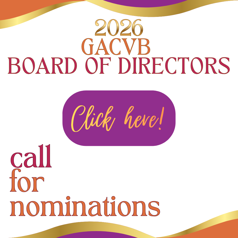 The role of the GACVB Board of Directors is an important one. The Board acts as a support, advisor, and cheerleader to GACVB and its staff, ultimately helping GACVB in its mission to be the unified voice of Georgia's DMOs, and elevating Georgia's tourism industry via advocacy and opportunities for education and professional development. GACVB can not be successful without committed and enthusiastic members, including the Board of Directors helping to steer the way forward. We welcome our active members to nominate other active members (or yourself!) to serve on our Board of Directors. Please note the following requirements and expectations of a GACVB Board Member. If you are interested in submitting a nomination, please click the link at the bottom of this page.